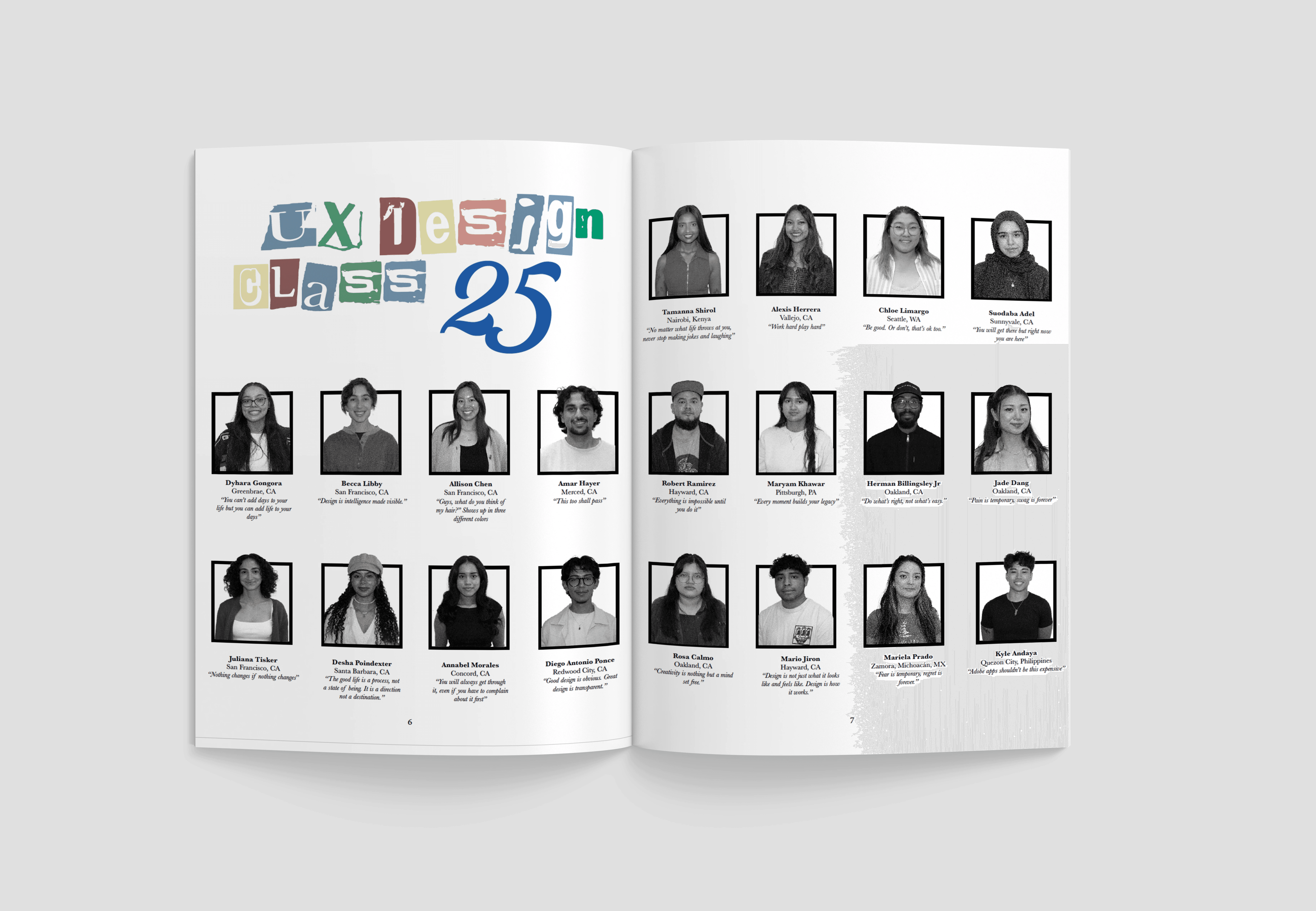 As Creative Director for these two-page spreads, giving each student full creative control while providing the structural directions to make sure the magazine design is cohesive. My purpose was to provide a platform where my peers could tell their own story of becoming designers and showcase the specific designers they have created. I wanted to move beyond a standard bio and create a living resume that puts a student's unique face, journey, and design style directly in front of industry leaders.